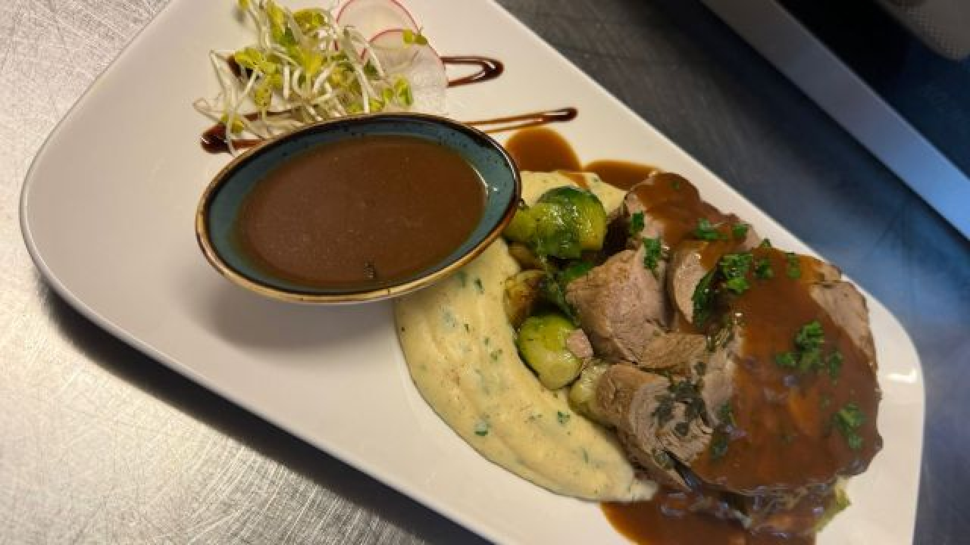 26.-29.05: Schweinefilet mit Brokkoli, Blumenkohlgemüse, Herzogin-Kartoffel und Hollandaise 18,90 €